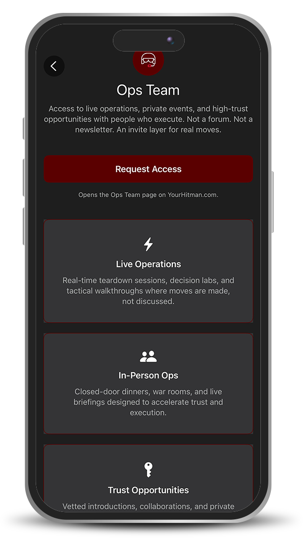 Hitman Ops is built to restore clarity when decisions, reputation, and momentum are on the line. Read less. Think sharper. Strike cleaner.